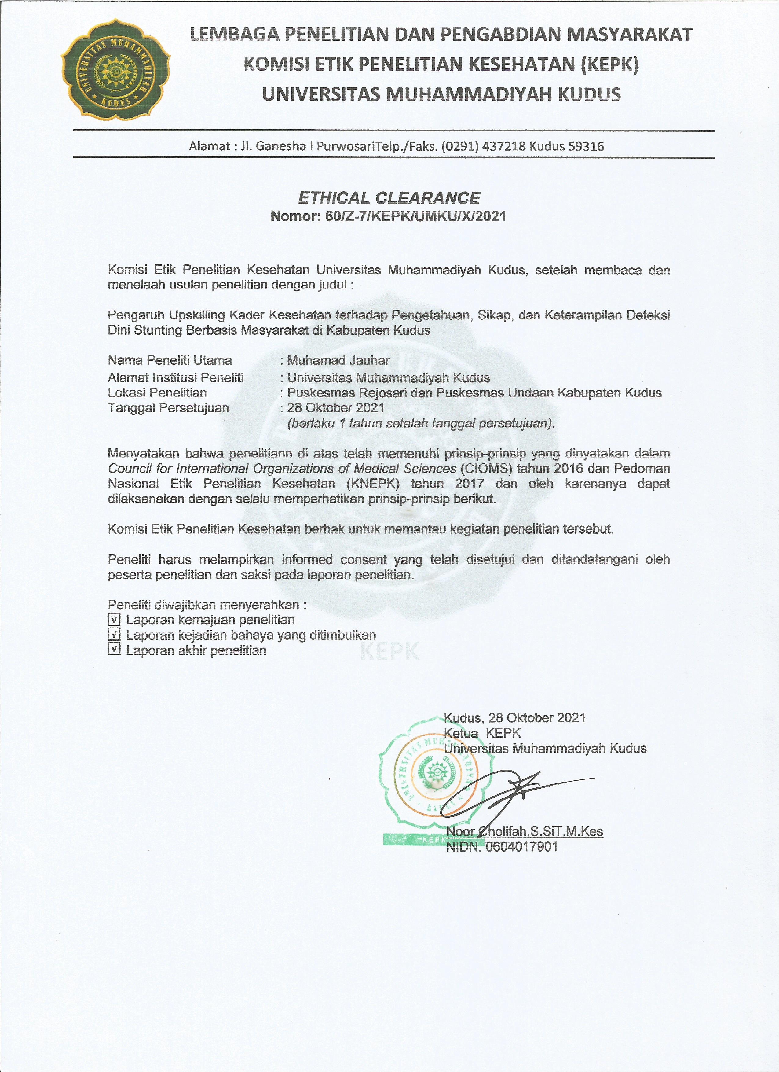 Early detection, Health Cadres, Knowledge, StuntingAbstract